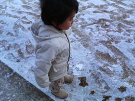 昨日ずいぶん冷え込むと思ったら、朝起きたらこの冬初の積雪でした。1センチぐらいの積雪ですが。 狂喜して走り回る子ザルが1匹。 それを見ながら、母は凍っています。 (((( ;゜Д゜)))ブルブル |