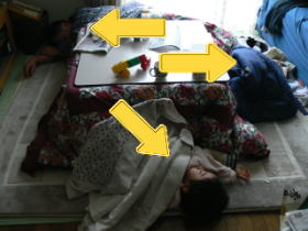 | せっかくの3連休でしたが、ぴよ太もぺこ助も調子がイマイチなので、実家にさえ帰らず、ごろごろと家で過ごす事に。 まあ、缶詰なのもあんまりなので、イオンモールへドラゴンボールショーを見に行ったりしましたが。 ![]() 去年は、こたつ無しでかなり粘りましたが、結局パパの請願で折れてしまったので、今年は最初からこたつを出しました。 こたつを出すと、こういう状態。あっちにもこっちにもゴロゴロと・・・・ 片付かなくて困るわ〜〜〜(^_^;) ところで11月22日は「いい夫婦の日」だそうだけど。 いい夫婦の基準って、・・・何? |