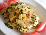 ★韮菜炒蛋 ニラ・豚肉糸切り 玉子炒め ニラの炒めた香りと ふわふわ玉子炒めです |