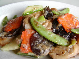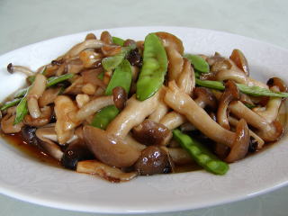 干炒磨 (ガン・ツオ・マー・クー) しめじのオイスターソース炒め ★ 干炒→からからに炒める 磨磨ィしめじ しめじとオイスターソースの香り が甘くあっさりした料理です 不辣菜(辛くない料理) |