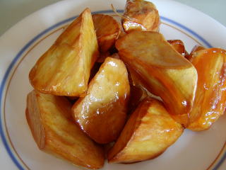 抜絲地瓜 (バッ・スー・チィ・クワ) さつまいもの飴煮 ★ 大学芋は蜜をからめたものとは 少し違い飴を作りその中でからめた物 名前はさつまいもが飴の糸をひくところ からつきました 甘い点心 |