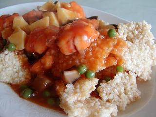 蝦仁鍋巴 (シャー・レン・コー・バ) おこげ料理(エビのトマト味ソース) 鍋巴→おこげ 巴に米へんを付けるのですが 漢字が無いため良く似た字を使ってます 不辣菜(辛くない料理) |
