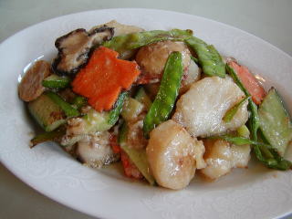 麻醤鮮貝 (マー・ジャン・シェン・ペイ) 帆立貝柱の胡麻風味炒め ★ 麻醤→胡麻味噌 鮮貝→帆立(新鮮な貝etc) 不辣菜(辛くない料理) |