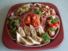 | ★中華オードブル (※要予約) ◆牛肉オイスターソース炒め ◆海老のチリソース煮込み ◆鶏肉・カシューナッツ炒め ◆豚肉・ザーサイの炒め物 ◆若鶏のから揚げ ◆はるまき |