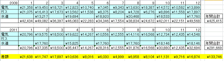 新しい家(オール電化)の年間光熱費は291、669円でした