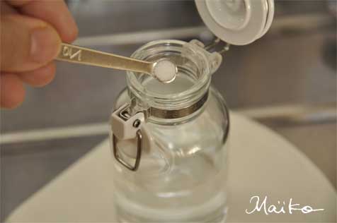 | 100ccほど軽量した湯ざましにビタミンCを投入! |