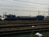 | 野辺地駅にて撮影。JR東日本に所属し、この地ではほとんどの貨物を牽引していた。正式な愛称は「ECO POWER・金太郎」。首都圏から北海道の五稜郭までの直流・交流混在線区を機関車を付け替えることなく直通させるために開発された。2車体8軸構成で青函トンネルも走行できる。常に2車体1セットで走行し、第二種鉄道事業者(車両と鉄道施設のみを保有、線路は借りて使うスタイルの鉄道会社)として線路保有会社に支払う線路使用料を「機関車1台分」としている。 |