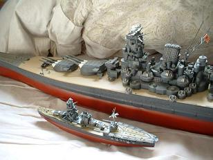 なお、写真の伊勢は艦体上部と艦底部分は接着していません。カベ部分に ただはめ込んでいるだけです。実際に走らせるときはセロテープで目立たないように仮止めします。