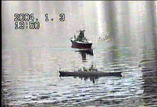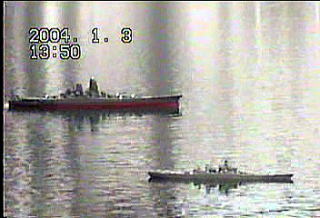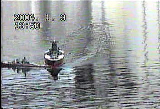 回避運動 間に合わず艦首付近に 激突!