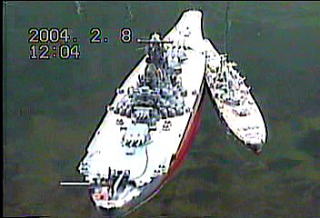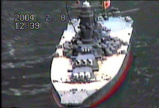 すると突然 ミズーリが前回のリベンジとばかり奇襲攻撃で武蔵に突進。 武蔵乗組員「右舷前方に接触」 しかし レイテ沖海戦では魚雷20本喰らいながら浮いていた武蔵。 このくらいでは全然歯が立たない。 ミズーリ艦長:パシリ「奇襲失敗か」