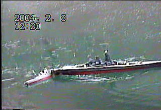 ミズーリ乗組員「左舷に傾斜 浸水甚大」 左舷に傾き、喫水が甲板近くに達している。 ミズーリ艦長:パシリ 「くっ、またしても・・」