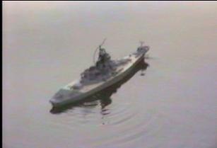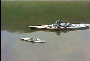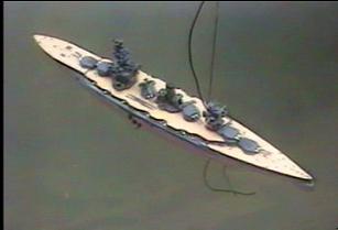 改装による重量超過により喫水がかなり深くなりました。 上下分離の為に副砲の下に切れ目ができています。