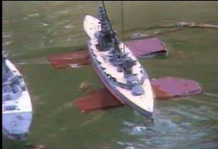 扶桑の浮力材の上に乗り上げるニュージャージー