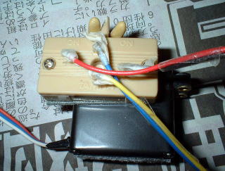 ラジコン製作の肝の部分です。旧式のスピードコントロールは乾電池仕様だと難しいし(最近は入手困難)アンプは高価なので諦めて タ○ヤの正転、逆転スイッチ(楽しい工作シリーズ電池BOXについています。)を使ったシンプルな構造にします。