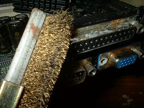 錆びを落とした端子にキーボード、マウス、モニタを恐る恐る接続してみました。
