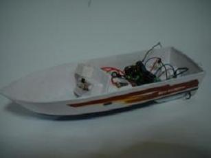 左舷モーターをFA130のモーターに交換し、これを推進用とし、右舷モーターは舵取り用に使うことにしました。推進用モーターを1基に固定したので 旋回時に速力が半減する欠点を改善。