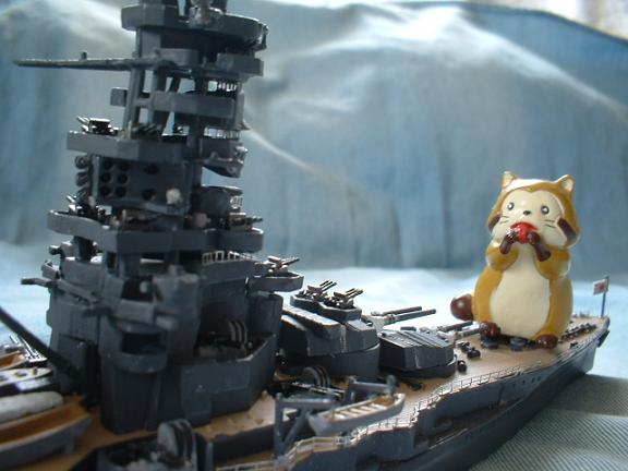 3ミリ程度の部品の三連装機銃の銃身と銃座で塗料の塗り分けをしてみたり、各構造物に汚しを加えたりしましたが それがしの技量のなさと安物デジカメとのコンビネーションでは逆にマイナスになったかも・・カックン