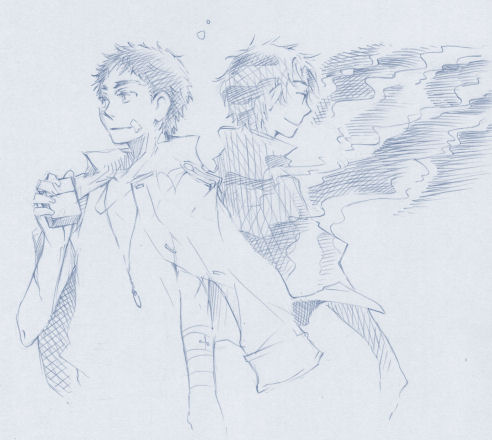 ![]() イベント御礼絵でした。 荒太兄ちゃんとミキちゃん(タナトス)と周瑜さん(呉)。 なんとなくですが共通点があるような気がする3人…。 |