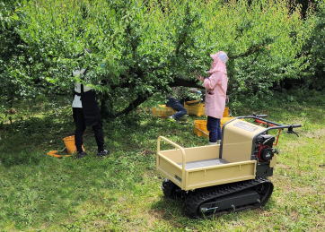今朝は倉庫でコーヒータイムのおしゃべりの後、坂井さんと深津さんがそれぞれ1番梅畑、2番梅畑に第1回目の消毒に行ってくれました。残りのメンバーはA畑で2週間前にマルチを片付けた時の草を端に寄せて全面を耕運機で耕起しました。