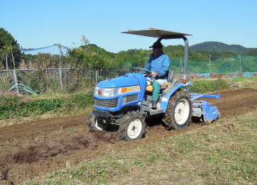 2畝分に生えている草を鍬で刮げ取り 耕運機で耕し、手作業で2畝分の土を鍬で寄せて高さのある1畝にしました。そしてケイフンと堆肥を投入して再度耕運機で耕し、再び畝を整えて最後にマルチを張って今日の作業を終了しました。 |