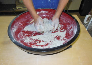 2019.3.4 外は雨ですが室内で昨年1月以来の手打ち蕎麦パーティーを行いました。3年前に粉挽き機を購入したときは5秒で粉挽きができて感動したのですが蕎麦殻の混入があって少し舌触りの悪い蕎麦になってしまいました。 その後深津さんが挽き方に工夫をしてくれました。先ずさっと粗挽きをしてから振るいを掛けた粉を再度挽いてメッシュの細かい振るいで殻の入らないキメ細かな粉を作ることが出来ました。 |