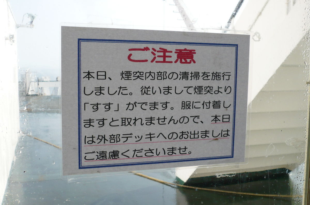 船のデッキに出てみるとあわてて船員さんとかが来て「ススが飛んでくるから中に入ってください」って。 最初はワケがわからなかったよ。