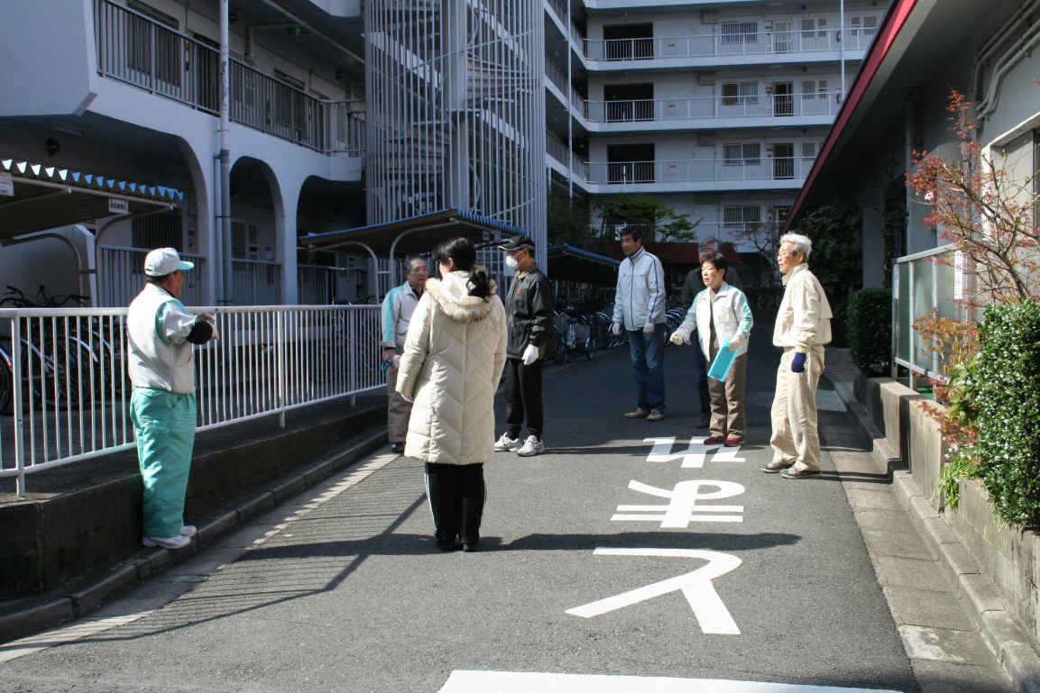 バックグラウンドミュージックは、他人に迷惑がかからないように、音量を調整してください。 Visit number: 7.活動状況の紹介 2014年8月23日(土) 2014年度第4回理事会開催 2014年7月19日(土) 2014年度第3回理事会開催 2014年6月21日(土) 2014年度第2回理事会開催 2014年5月17日(土) 2014年度第1回理事会開催 2014年4月29日(火) 2013年度総会開催 2014年4月4日(金) 2013年度第12回理事会開催 2014年3月15日(土) 2013年度第11回理事会開催 2014年2月15日(土) 2013年度第10回理事会開催 2014年1月18日(土) 2013年度第9回理事会開催 2013年12月21日(土) 2013年度第8回理事会開催 2013年11月16日(土) 2013年度第7回理事会開催 2013年10月19日(土) 2013年度第6回理事会開催 2013年9月21日(土) 2013年度第5回理事会開催 2013年8月17日(土) 2013年度第4回理事会開催 2013年7月20日(土) 2013年度第3回理事会開催 2013年6月15日(土) 2013年度第2回理事会開催 2013年5月18日(土) 2013年度第1回理事会開催 2013年4月29日(月) 2012年度総会開催 2013年4月5日(金) 2012年度第12回理事会開催 2013年3月16日(土) 2012年度第11回理事会開催 2013年2月16日(土) 2012年度第10回理事会開催 2013年1月19日(土) 2012年度第9回理事会開催 2012年12月15日(土) 2012年度第8回理事会開催 2012年12月2日(日) 配水管埋設工事臨時総会開催 2012年11月17日(土) 2012年度第7回理事会開催 2012年10月20日(土) 2012年度第6回理事会開催 2012年9月15日(土) 2012年度第5回理事会開催 2012年8月18日(土) 2012年度第4回理事会開催 2012年7月21日(土) 2012年度第3回理事会開催 2012年6月16日(土) 2012年度第2回理事会開催 2012年5月19日(土) 2012年度第1回理事会開催 2011年4月29日(日) 2011年度総会開催 2012年4月7日(土) 2011年度第12回理事会開催 2012年3月17日(土) 2011年度第11回理事会開催 2012年2月18日(土) 2011年度第10回理事会開催 2012年1月21日(土) 2011年度第9回理事会開催 2011年12月17日(土) 2011年度第8回理事会開催 2011年11月19日(土) 2011年度第7回理事会開催 2011年10月15日(土) 2011年度第6回理事会開催 2011年9月17日(土) 2011年度第5回理事会開催 2011年8月20日(土) 2011年度第4回理事会開催 2011年7月16日(土) 2011年度第3回理事会開催 2011年6月18日(土) 2011年度第2回理事会開催 2011年5月21日(土) 2011年度第1回理事会開催 2011年4月29日(金) 2010年度総会開催 2011年4月9日(土) 2010年度第12回理事会開催 2011年3月19日(土) 2010年度第11回理事会開催 2011年2月12日(土) 2010年度第10回理事会開催 2011年1月23日(日) 大規模修繕工事臨時総会開催 2011年1月22日(土) 2010年度第9回理事会開催 2010年12月18日(土) 2010年度第8回理事会開催 2010年11月20日(土) 2010年度第7回理事会開催 2010年10月16日(土) 2010年度第6回理事会開催 2010年10月2日(土) 2010年度第5回理事会開催 2010年8月21日(土) 2010年度第4回理事会開催 2010年7月17日(土) 2010年度第3回理事会開催 2010年6月19日(土) 2010年度第2回理事会開催 2010年5月22日(土) 2010年度第1回理事会開催 2010年4月25日(日) 2009年度総会開催 2010年4月6日(火) 2009年度第12回理事会開催 2010年3月20日(土) 2009年度第11回理事会開催 2010年2月20日(土) 2009年度第10回理事会開催 2010年1月16日(土) 2009年度第9回理事会開催 2009年12月19日(土) 2009年度第8回理事会開催 2009年11月21日(土) 2009年度第7回理事会開催 2009年10月17日(土) 2009年度第6回理事会開催 2009年9月26日(土) 2009年度第5回理事会開催 2009年8月20日(木) 2009年度第4回理事会開催 2009年7月18日(土) 2009年度第3回理事会開催 2009年6月20日(土) 2009年度第2回理事会開催 2009年5月10日(日) 2009年度第1回理事会開催 2009年4月26日(日) 2008年度総会開催 2009年4月7日(火) 2008年度第12回理事会開催 2009年4月3日(金) 桜満開 2009年3月29日(日)09:30〜10:30時 2008年度第2回自転車整理 役員さん9名と管理人さんと管理会社のかたがた3名が集まり、 (管理人さんと管理会社のかたがた6名は前日も集まり、) ルネ千里丘の全棟の駐輪場に置いてある自転車の中で、 管理シールラベルを貼ってない自転車の整理を実施しました。 全棟の全部の自転車を1台づつ調べて、 駐輪場から集積場までの数十メートル、 数十台の自転車を手でかついで運び、汗をかきました。 お疲れ様でした。 2009年3月17日(火) 2008年度第11回理事会開催 2009年3月10日(火) 2008年度第9回長期修繕計画会議開催 2009年2月17日(火) 2008年度第10回理事会開催 2009年2月10日(火) 2008年度第8回長期修繕計画会議開催 2009年1月20日(火) 2008年度第9回理事会開催 2009年1月15日(木) 2008年度第7回長期修繕計画会議開催 2008年12月16日(火) 2008年度第8回理事会開催 2008年11月30日(日) ミニ運動会(自治会関連) 山田中学校に於いて、役員さん1名が協力参加し、警備を担当しました。 2008年11月24日(月)10:00〜11:00時 消防訓練 秋も終わり、落葉のルネ千里丘内で消防訓練が実施されました。 今回の消防訓練は、ルネ千里丘の入居者を対象として、 出火時における消防活動の推進および防火意識の向上を図るため、 肌寒い日にもかかわらず、入居者や管理会社のかたがたなど、 多数の人が参加して、消防訓練が行われました。 また、今回の消防訓練は、吹田市東消防署に立会ってご指導して頂き、 非常火災警報を即鳴らして全棟に通報連絡する