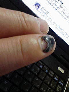 数日前からごく一部だけがつながっていてぷらんぷらんになっていて、とはいえつながっていた部分は「本体」に残ろうとしっかりひっついていて、試しに「へごう」としてみると意外に結構痛くって、昨日からはいいかげん「ぷらんぷらんさ」が気になるのでバンドエイドで固定していた爪がようやく「へげた」。