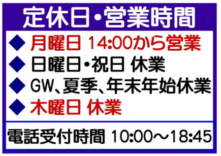 ■ワンオペにて営業中ですので、お電話の上ご来店ください。
