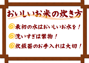 最新の精米設備で精米していますので、2〜3回やさしく洗うだけの方がお米自体を傷めず、お米自体の風味を楽しめます。浸水のお水は少し白く濁っている方がおいしいお米に炊き上がります。