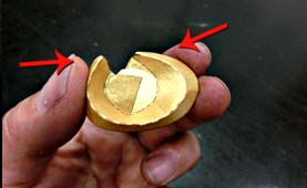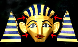 ![]() 矢印のところに接着剤をつける 裏から見たところ | 「目」ののりしろに接着剤をつけ、裏 から貼ります。 目の玉の位置を合わせながら貼り ましょう。 | ||||