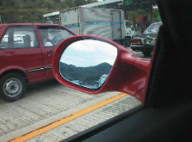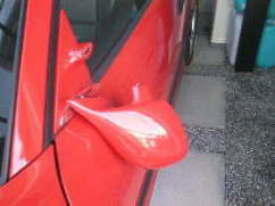 通常のミラーより空力特性を考慮しているミラー、見える範囲はノーマルのものより小さくなるのが慣れれば大丈夫。