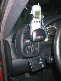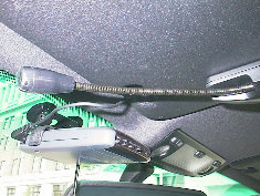 マイクはサンシェイドに設置しスピーカーはオートバックスで買った汎用金具を折り曲げて介してダッシュボードのねじに友締め。電源はACCから分岐してとっている。