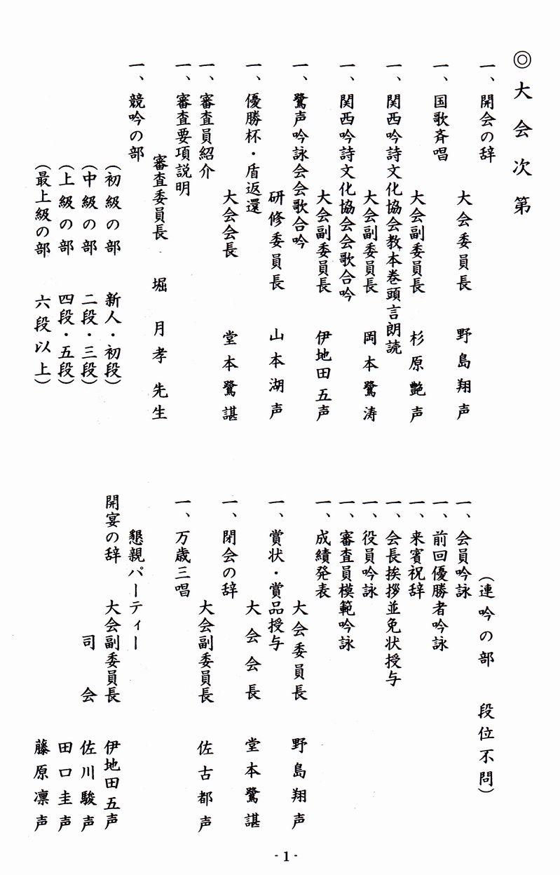 | (一般吟詠) | 競吟に出ない人は必ず出吟を(独吟・連吟・合吟(関吟テキストのもの) 但し、一人につき2分以内 |