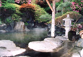 「白雲荘」 この辺りは日本一露天風呂が多い所らしいです 旅館も沢山あります そこで、家族で貸し切りの出来る露天風呂のある旅館を探してこの旅館に決めました お風呂はご覧の通りの露天風呂です 特別大きくはありませんが、家族には十分の大きさです 私達は、長いことお風呂に入る習慣がないので、さっさと上がってしましました (のんびり出来ない性分で、貧乏性だと思います) 料理は、イワナの塩焼きが最初に出ます(ちゃんと時間を見計らって出てくる所が良い)が、これが今までに食べたことの無いほど美味しかったです (炭で焼いたらしく、外がカリッとしてなかがホワっとした感じですばらしかったです) その後の料理も、満足のいくものでした 道路沿いなので、車の音が結構うるさい点はマイナスですが、部屋もお布団も綺麗で、お勧め出来る旅館です |