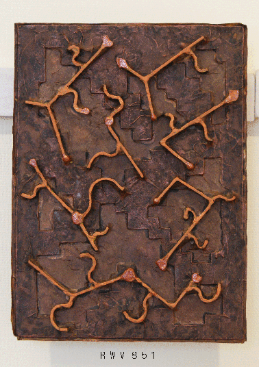 鉄を溶接して形を作り、裏と表から和紙(雁皮紙、楮紙)を膠で張り、