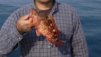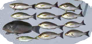 ズボ天秤で仕掛けを入れます、教授、ドライバーも同じです。イサキの棚を探すため15〜20mの範囲で別々の深さで探します。今回は餌取りがいます 何回か投入しているとやっとイサキが釣れました。棚は18m辺りです その後ポツポツと釣れますが続きません。 ポイントを変えることにしました。 少し深い場所にします ここでも最初でイサキが食ってきますが続きません、 あまりに暇なので釣ったイサキの下処理をします。 これだけ釣れたら充分だ 竿を仕舞います。