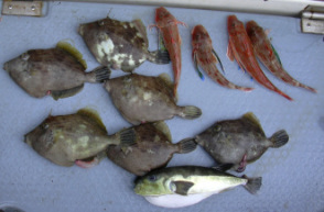 湾の中でシーアンカーを出して流します。4時間うろうろしながら粘って (勝手に言うな) 写真の釣果 でした |
