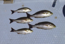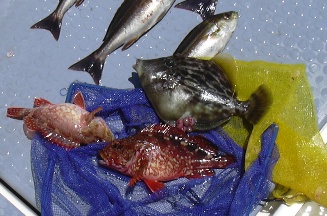 1時間もしないうちに風向きが安定しなくなり強く吹いてきました。 もしもこのまま強くなると 帰るのがちょっとつらくなりそうです 早めに戻ることにします 横からの風を受けながら 新鹿に戻ります 時間は10時前なので鈴置付近で アンカーを入れました 宙を釣るも底を釣るも 反応がありません しかたないので アンカーを上げ 流し釣に変更します、 ある場所に流れるとガシラがきます 何回か流して 数匹確保して 本日の 釣は終了します