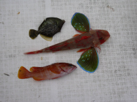 | 12月01日 Sポイント カワハギ 22cm 1匹 ホウボウ 1匹 赤マス 1匹 |