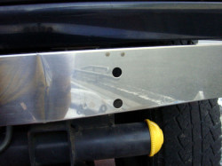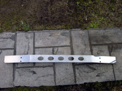 Fバンパーを交換に辺り作業が、平行出来るので取り付けることにしました。 仮にボディに当てて位置を決めます。 左右にボルト止めしないといけないので、穴あけが必要です。 |