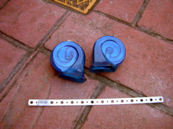取り外したホーンと、さとちゃんが用意したホーンを並べてみました。 色、形といい純正ホーンよりも、男前!です!! |
