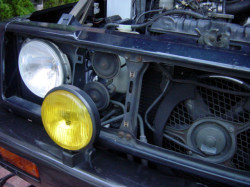 まず、純正ホーンの場所を確認します。 Fグリルの裏に発見しました。 |