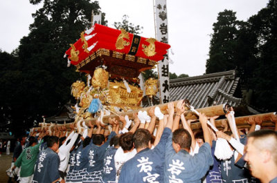 岩宮屋台です。岩壷神社に屋台倉を持ち、水引幕を「見返りの龍」から初代の「源頼政鵺退治」に変更されている。