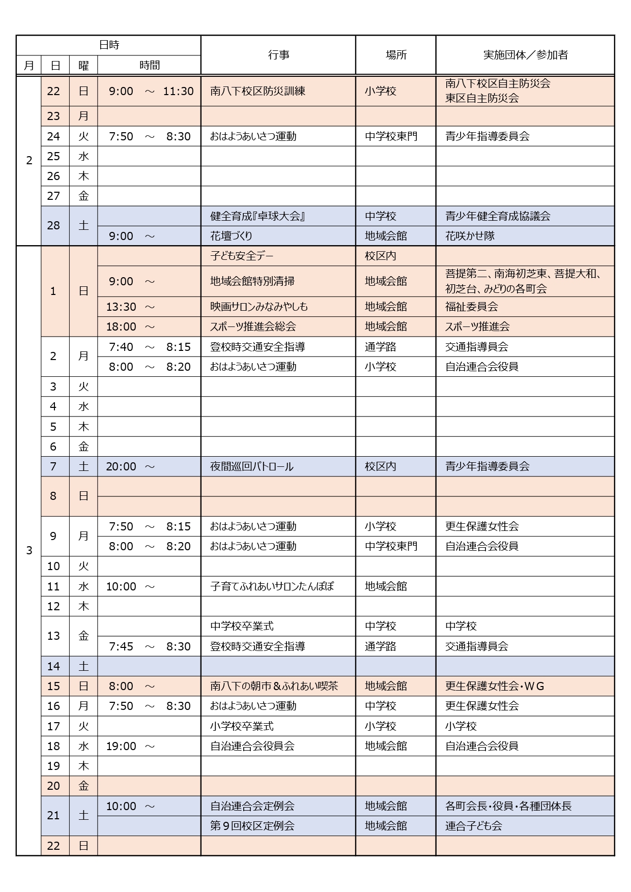 | 主催 | 南八下校区福祉委員会 |
