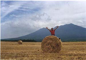 中ノ澤分校を後にして麓郷へ帰る途中に原始ケ原をバックに記念撮影。