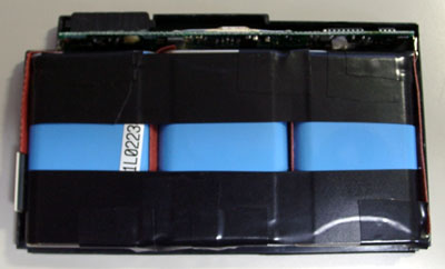 接点のハンダ付けが終わると、更に絶縁テープで補強して固着します。これであとはバッテリパックに戻すだけです。 |