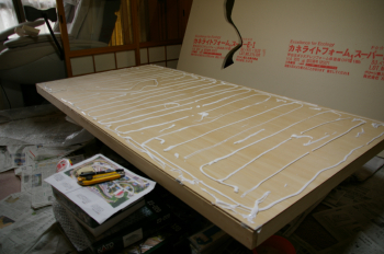 2.ベニヤ合板上にスタイロフォームをのせた状態