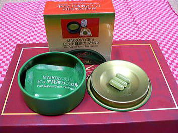| hiro&sawaさんのHP「Riru&Rikoの部屋」開設一周年の記念イベントクイズに応募し、全問正解で頂いた<Riru賞>の商品です♪ 抹茶カプセルです!2箱も頂きました♪ |