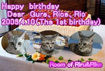 | グレ・ライス・リオの一歳を祝う誕生日プレートを頂きました♪ |